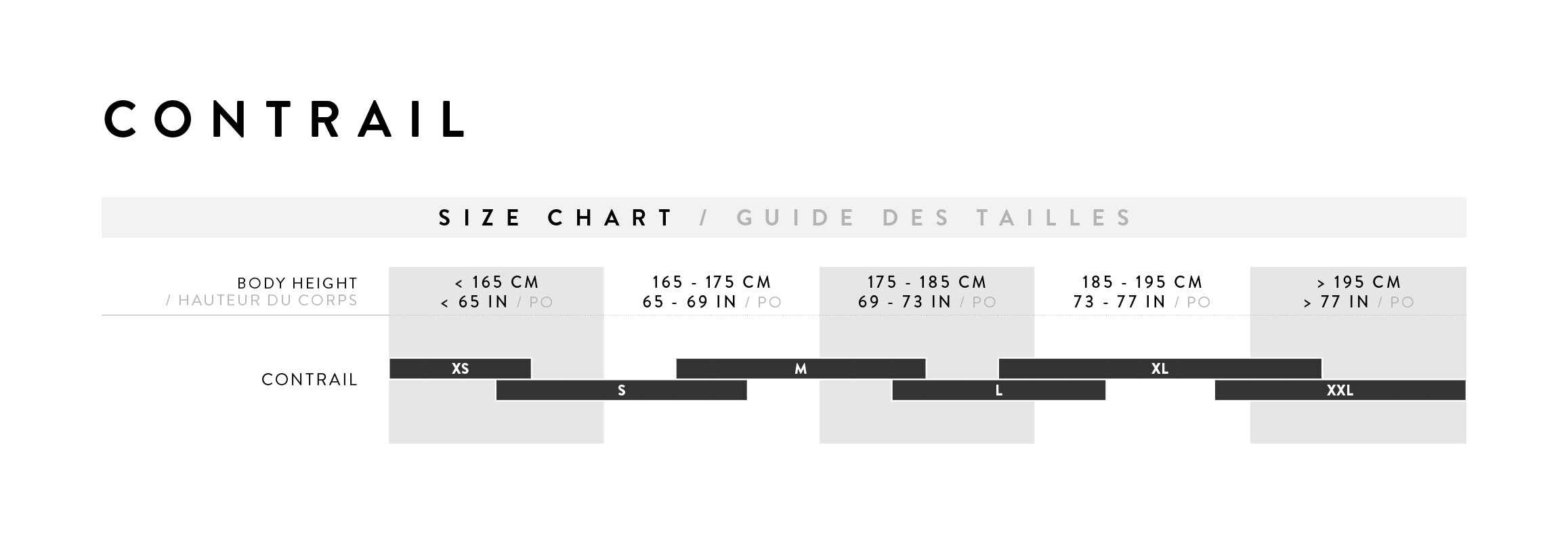 | XS | S | M | L | XL | XXL | |