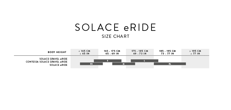 | frame | Solace Gravel eRIDE Disc HMX, eEndurance geometry / Replaceable Derailleur Hanger, Fully Internal cable routing, Range Extender Ready |